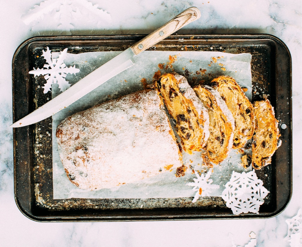 독일에서는 크리스마스를 기다리면서 크리스마스 한달전부터 먹는 크리스마스 빵(케이크)이 있습니다. 슈톨렌(Stollen)이라고 불리는 독일의 크리스마스 빵은 한국에서는 조금 생소할 수 있는데 독일에서는 크리스마스 시즌을 대표하는 전통있는 빵이에요. 모양은 아기 예수를 감싼듯한 형태를 본따서 동그랗지만 다소 투박한 모양을 하고 있습니다. 요즘 제과점에 가면 하얀 슈가 파우더가 듬뿍 뿌려져 있는 묵직한 슈톨렌을 볼 수 있는데, 사실 속을 볼 수 없어서 처음 봤을때 그 맛이 굉장히 궁금했던 빵입니다.