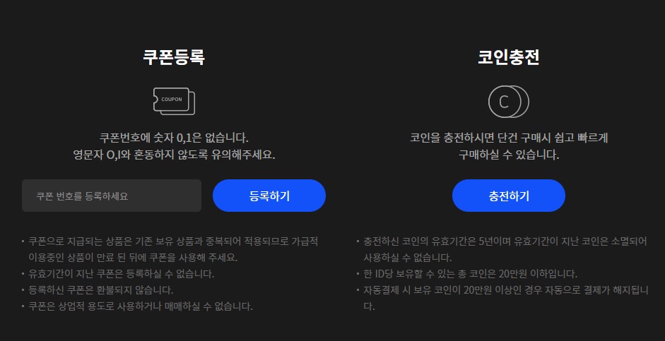 코인을 충전해놓으면 매번 카드 결제할 필요 없이 보유 코인에서 차감해서 쓰실 수 있습니다.