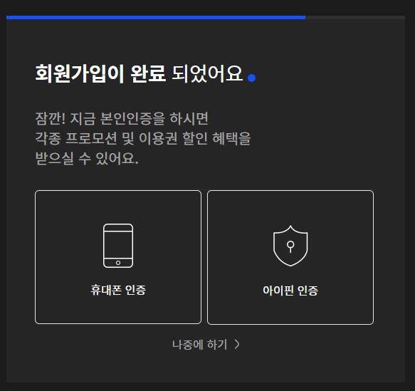 휴대폰으로 본인인증을 해야 하는 것 같아 실명으로 가입 완료!