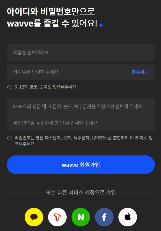 회원가입은 웨이브 앱이나 홈페이지에서 가능합니다.